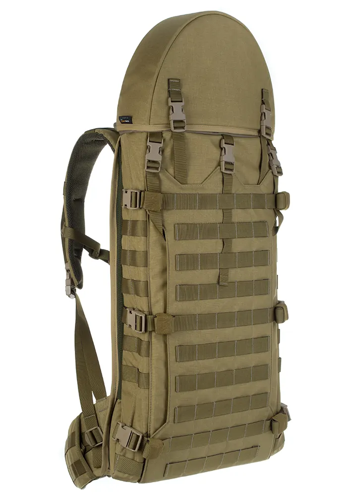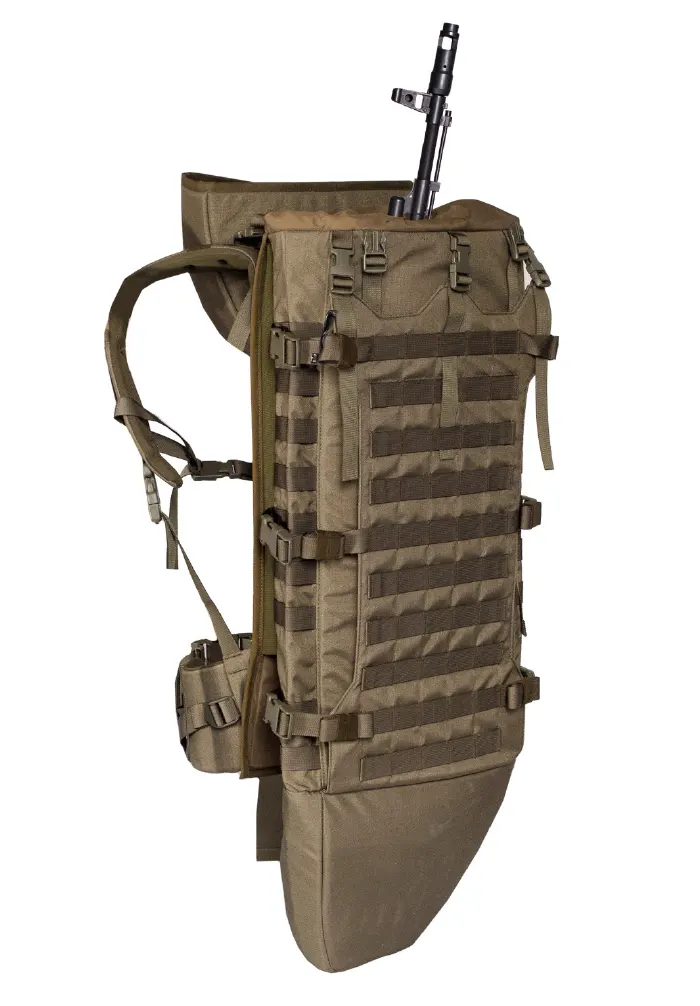 Uniwersalne nosidło do transportu broni z systemem umożliwiającym doczepienie dowolnego plecaka.