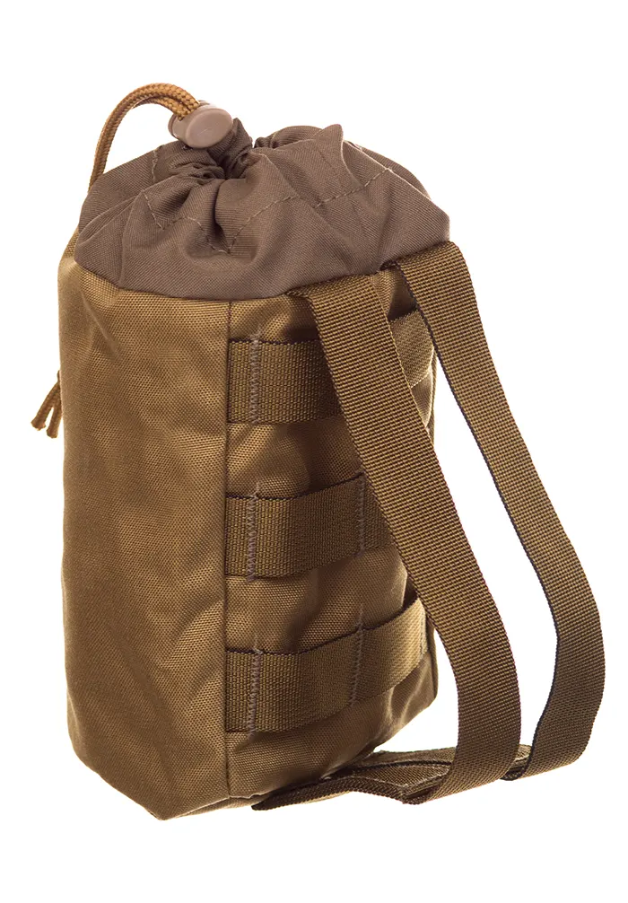 A pocket for a water bottle can be mount on the side of the backpack. Pocket made of Cordura, will hold a 1.5l bottle of water.
